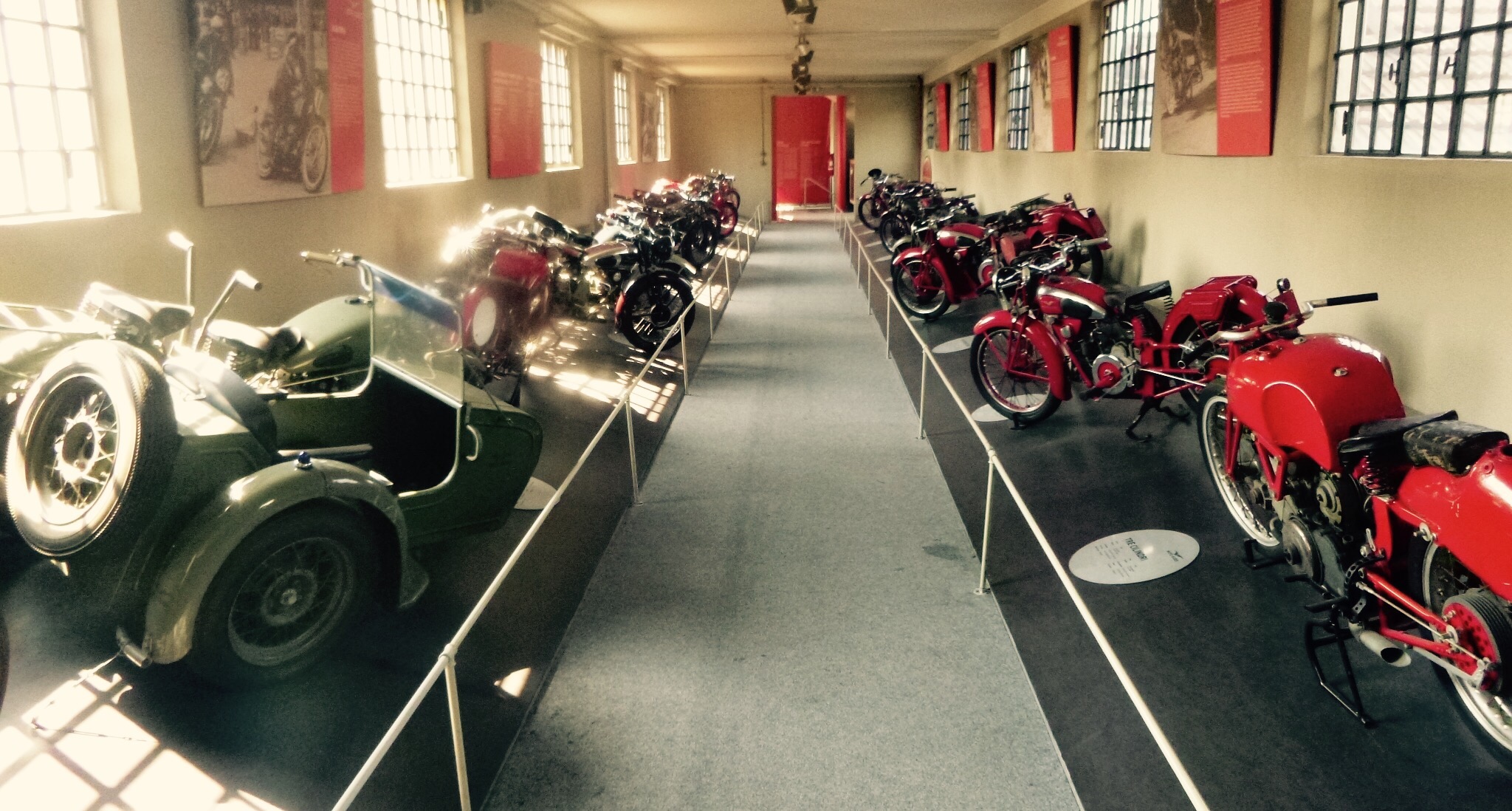 The museum was a bit of a let down really, no guide, just a number of rooms / corridors with old bikes in them. Think we were both hoping for a look at the factory, and a guide who could tell us about some of the bikes. Still, there’s was another, unexpected, Bond sight (Diamonds Are Forever). Bonus!