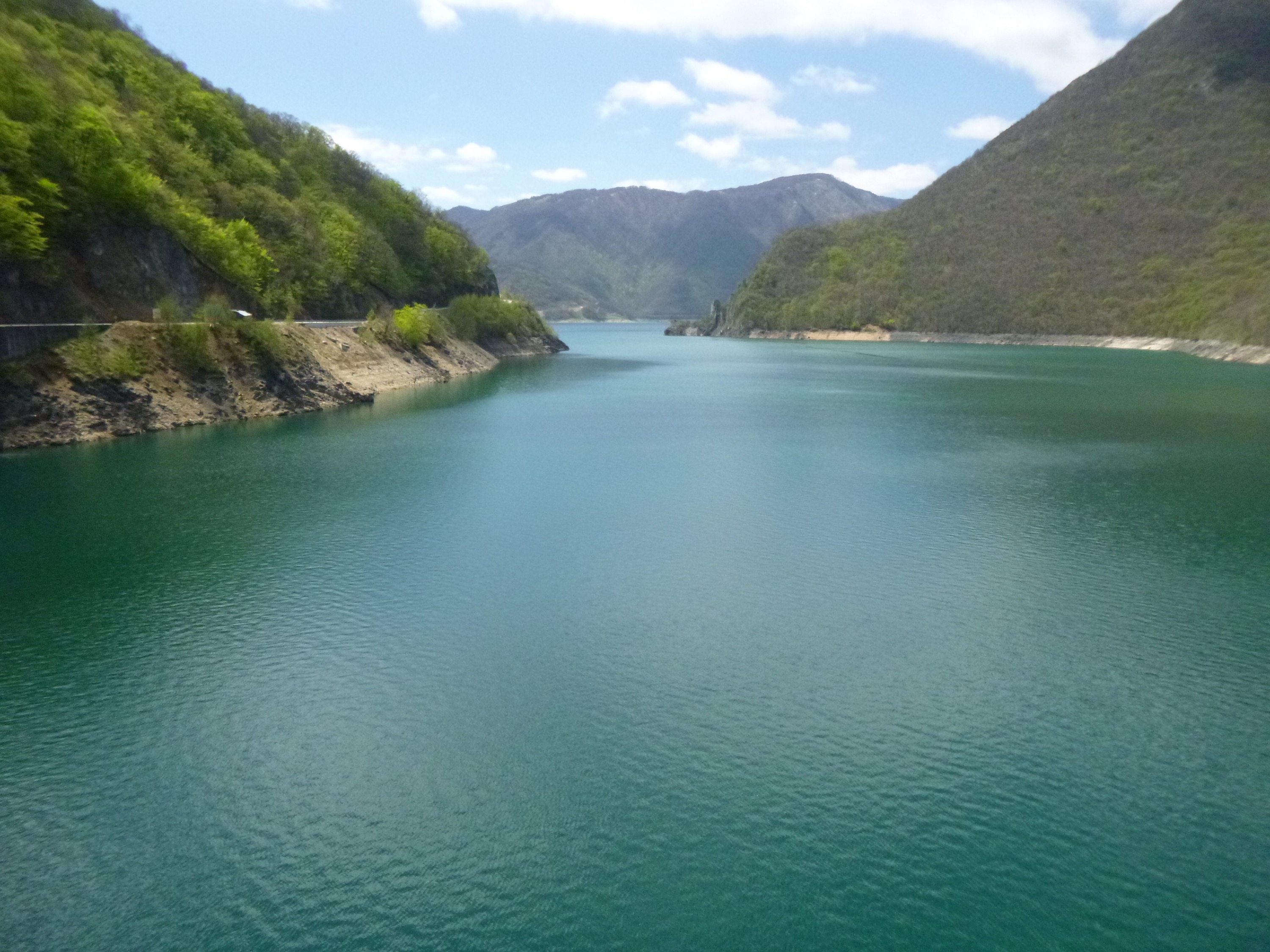 The road to the border was, erm, interesting. Lovely scenery, but rubbish Tarmac, and at the start of the Tara canyon there were road crews everywhere making repairs. There were opportunities (not taken) to ride off road, and I came across something I didn’t think I’d see on the road until I got to India – cows!