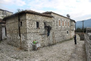 The jewel in Albania’s tourism industry is the town of Berat, where I spent the night. Most of the old town is a UNESCO world heritage site – Otoman homes inside a hill top castle. I took the opportunity of going late in the day when most tourists had left, I also took advantage of having an off road bike, to ride up the Ottoman cobbles to the top (most people walk up).