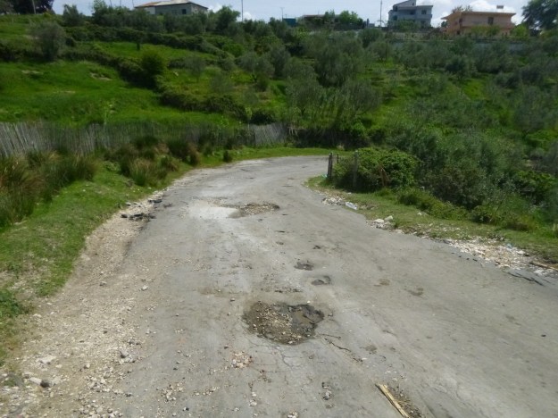Finally, a note about the roads in Albania. The lanes you see in the photos above, of 400 year old cobbled streets, are some of the best roads in the country! Seriously the roads are a disgrace. I appreciate that it is a poor country, but the roads defy logic, main streets can be smooth Tarmac one minute, then, without warning, there will be a section of un tarmacked road, then a section where it looks like six different crews have thrown Tarmac down but not bothered trying to flatten it, then a raised section for a pipe, or a man hole cover, then smooth Tarmac, then gravel, then a bit where the road buckles…. Locals know where the good bits are so swerve all over the roads to try to avoid the obstacles. Tourists like me just carry on regardless. Thankfully, having a bike that can ride off road helps – I’ve been on so called green lanes in the UK that are in better conditions than some of the main roads in Albania. I’ve taken some video footage, which I’ll try to figure out how to edit and upload, but for now, a photo.