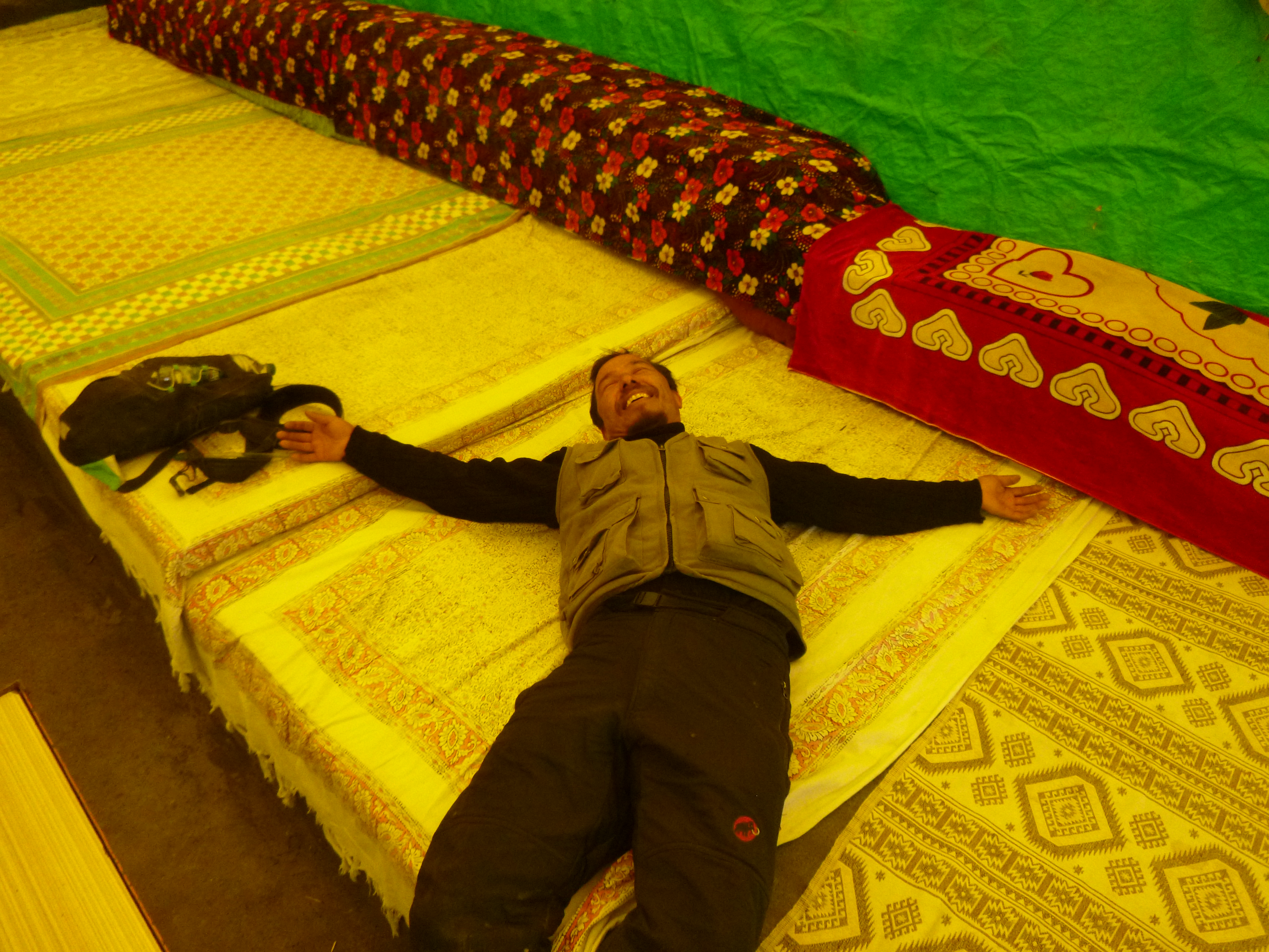 The tent was fairly quiet all day – I read a book, got some sleep, drank a lot of tea. But after dark it filled up, and up, and up. Indian riders started arriving looking for something to eat and somewhere to stay for the night – there were a few that were unimpressed that I had a whole room to myself… sorry chaps.