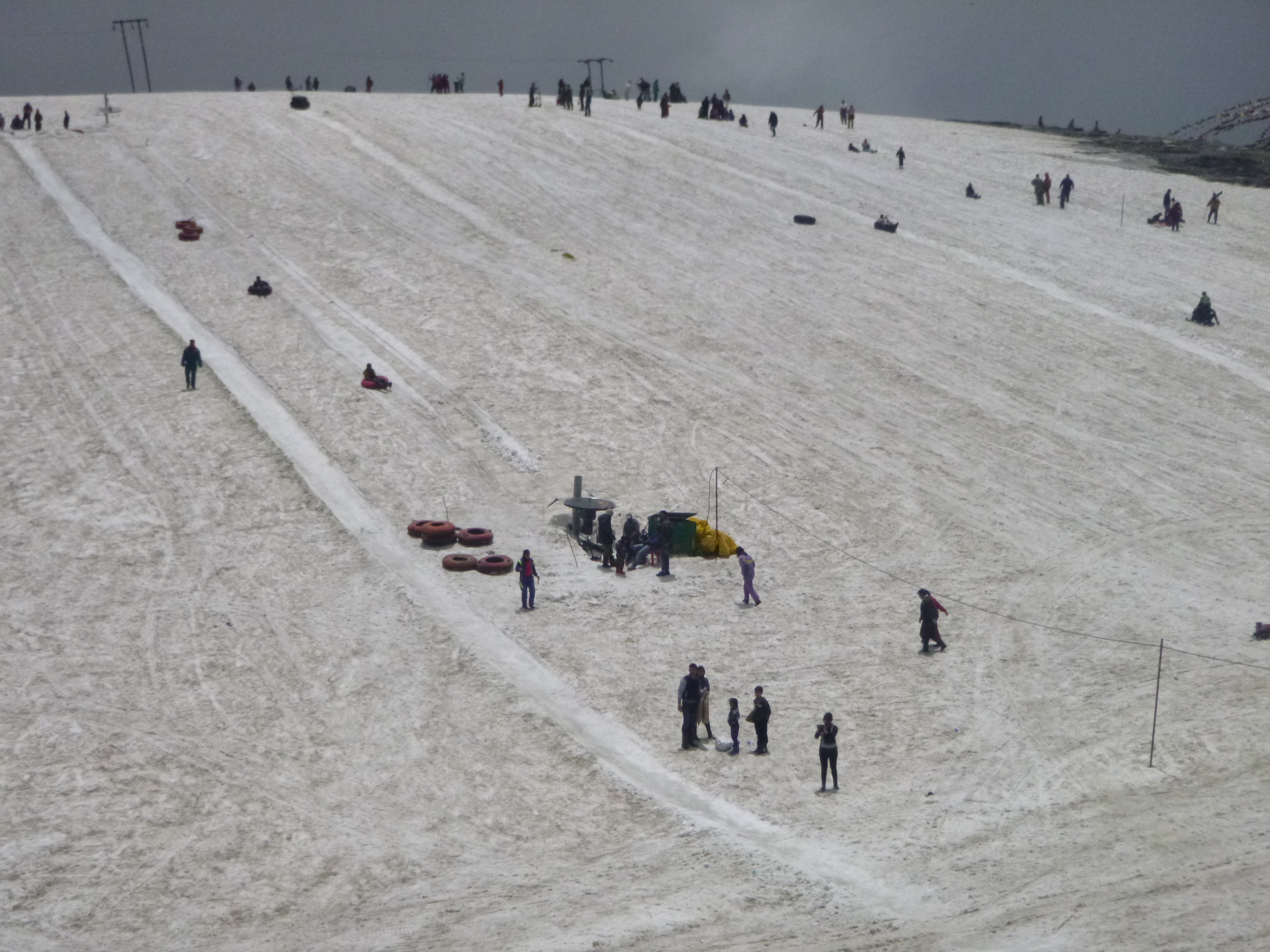 Unlike most of the peaks, the top is a bit of a plateau, so plenty of space for quad bikes, horses, sledges, skis… like I said, a bid like an Indian Chill Factore. Only with pollution coloured snow.