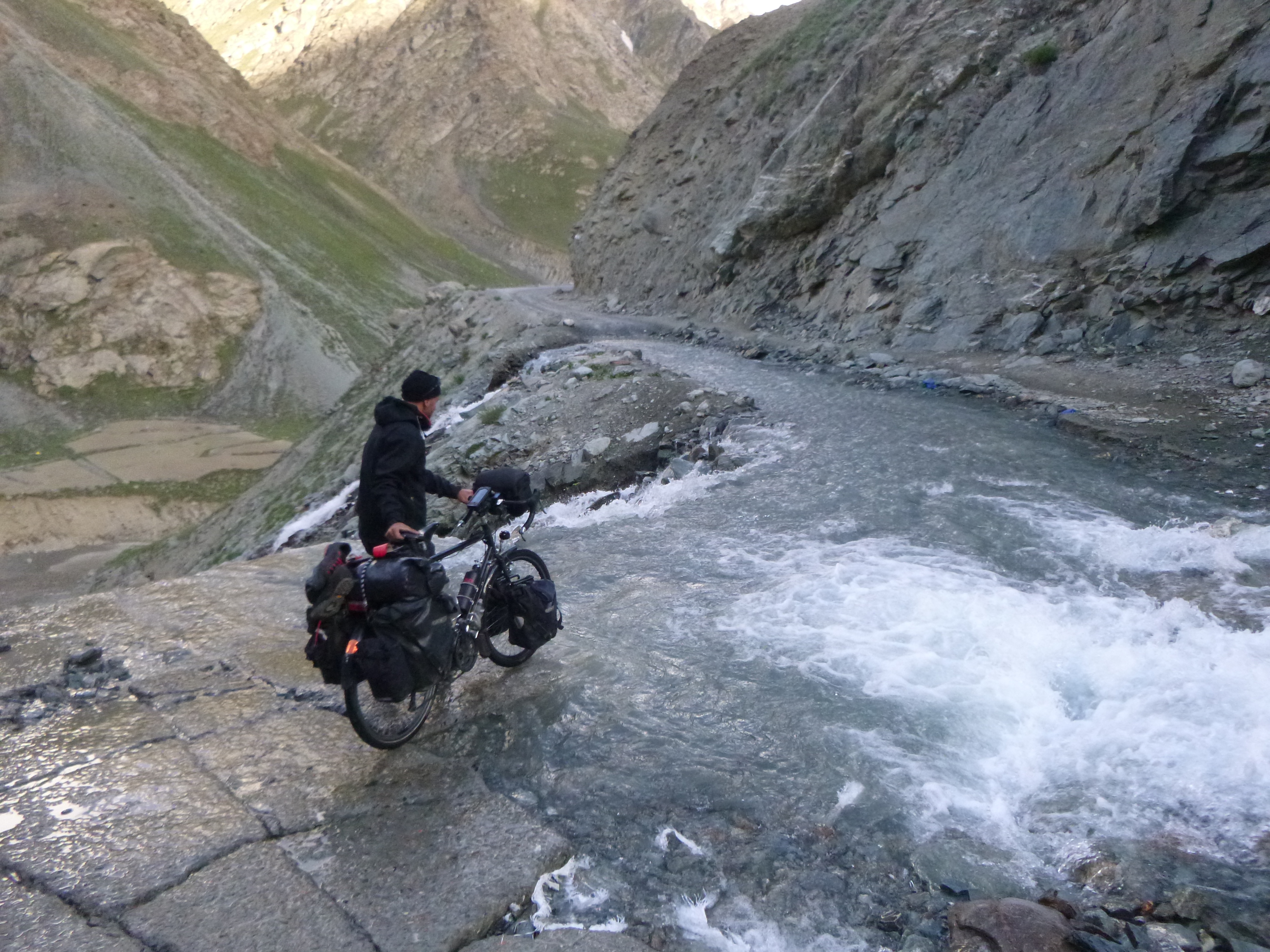 The water crossing you can see in the background was interesting. Several cars paused for a very long time before risking it. This cyclist actually crossed it three times – once to film it, once to recover his camera, and then when I took his photo.